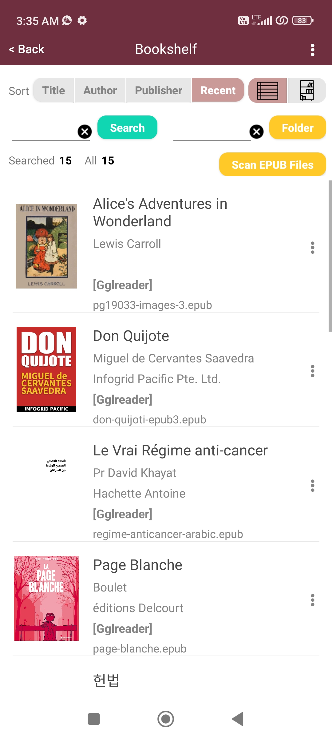 - There are no pre-imported EPUB eBooks in bookshelf of the Gglreader by default setting.