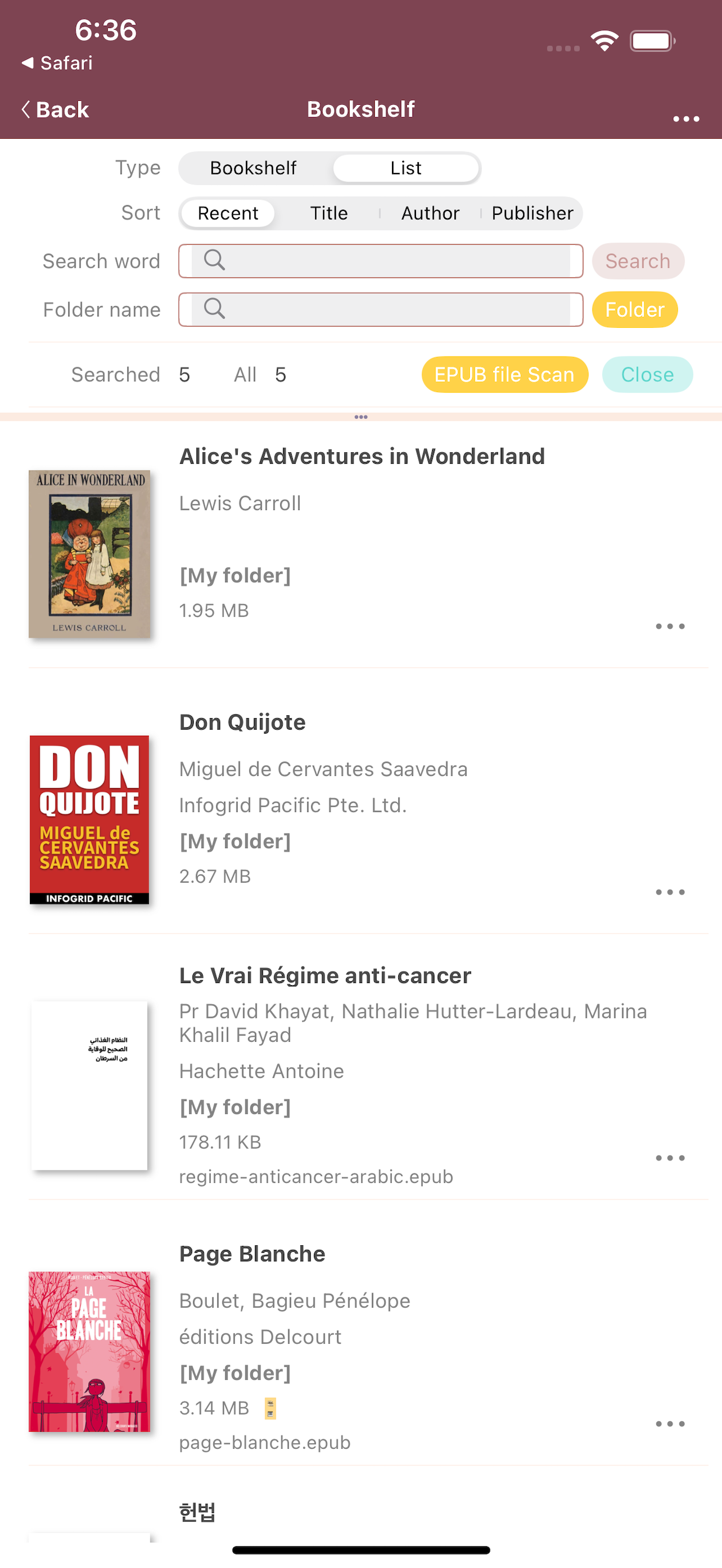 - Import .epub eBooks by selecting "Open with" context menu which pops up when you tap .epub file in file browser.